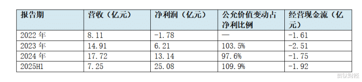 先看收入。2022年至2024年,公司营收永别为8.11亿元、14.91亿元、17.72亿元,看似增长迅猛。但进入2025年,画风突变:上半年营业收入仅为7.25亿元,同比大幅下滑37.9%。