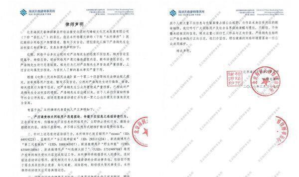严浩翔的法律声明银河国际游戏平台官网。(图片起首:微博时期峰峻)