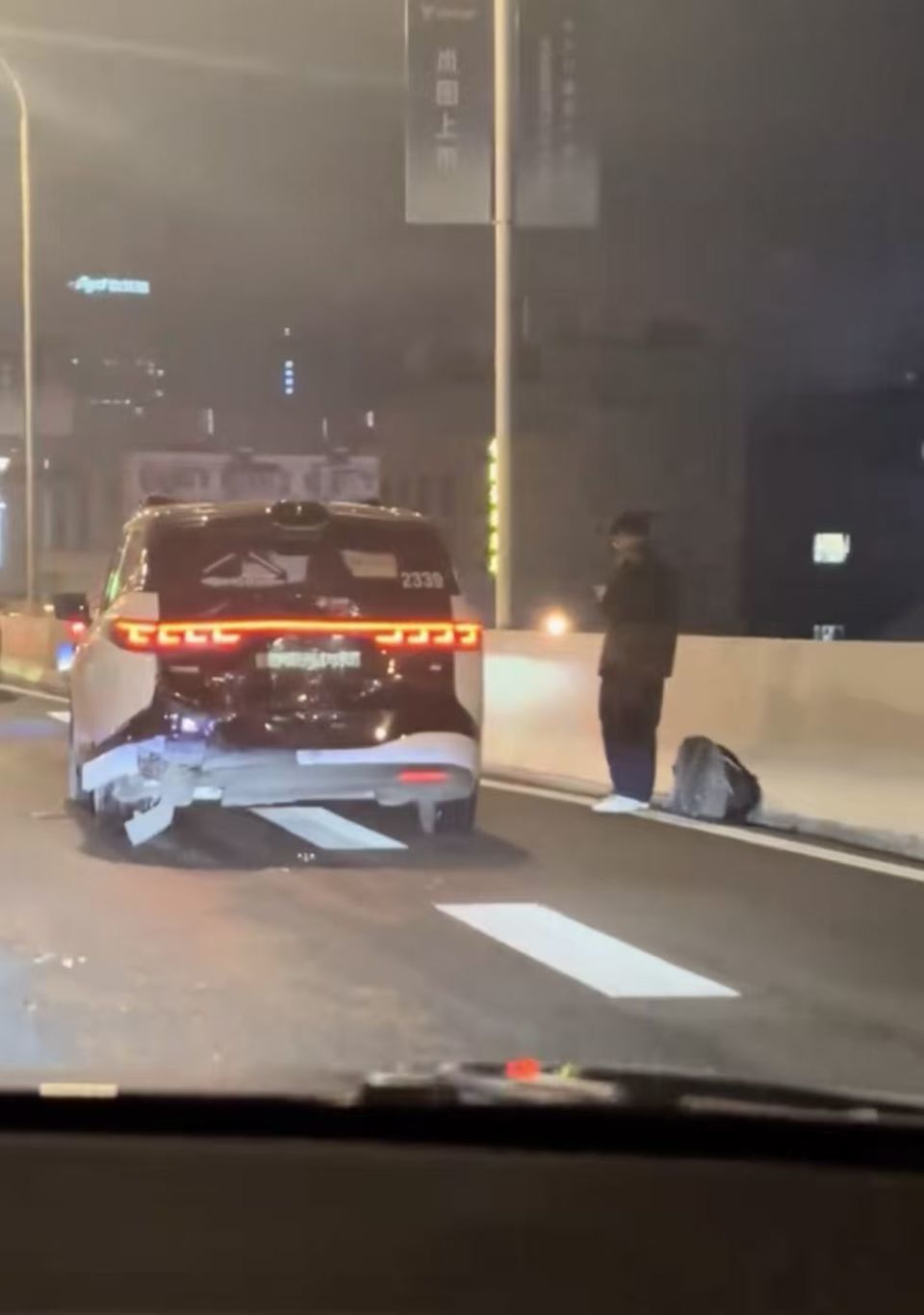 关于有乘客因车辆片刻停在高架桥被困车内的情况,客服东谈主员默示将接续对受影响的用户进行回拜,联系责任主谈主员正在跟进处理应中。关于有车辆因这次突发情状与无东谈主驾驶出租车发生滋事的情况,客服东谈主员相通默示有成心的责任主谈主员在正经跟进处理,具体的处理成果因触及公司里面秘籍未便汇报。