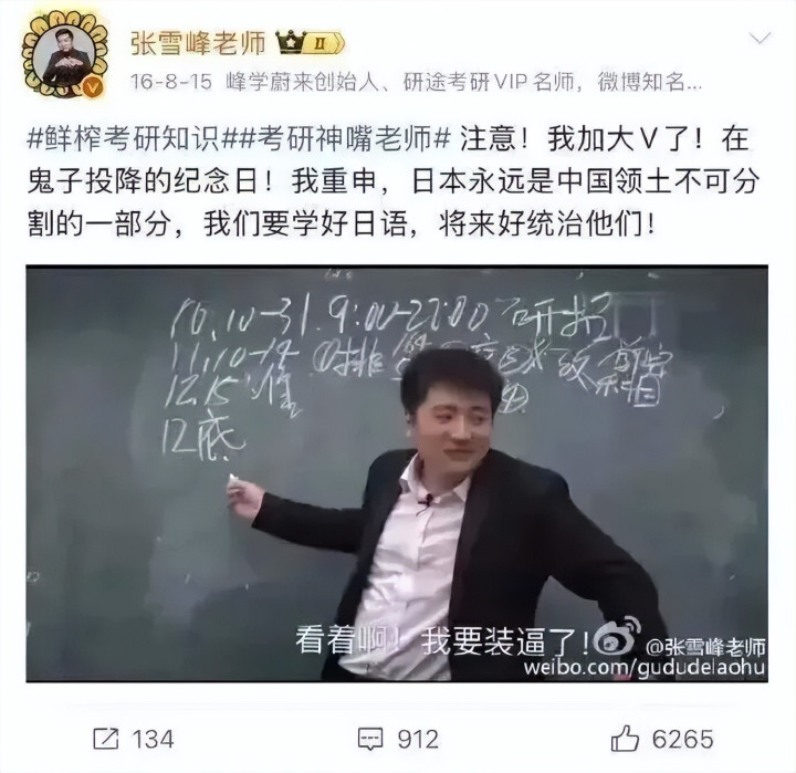 2016年,是张雪峰东说念主生的更动点。