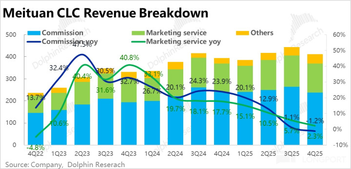 从本季革命业务内的其他收入(主如果小象超市等以毛销售额记收入的业务)增速小幅提速到近 15%。而佣金性收入(主要反馈 Keeta 等以佣金记收入的)同比增速进一步拉高到 115%,可以推测主如果 Keeta 的拉动。和本季革命业务失掉显然拉大的情况一致。