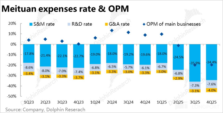 5、毛利和用度视角:本季毛利率仅为 26.2%,在外卖(配送)补贴影响收窄的情况下,依然环比下滑了约 0.2pct,冬季的季节性影响和新业务的遭殃应当王人有。