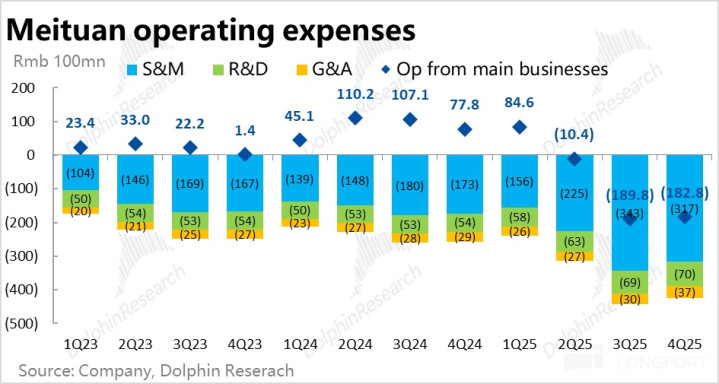 用度层面,本季总开销约 424 亿,同比加多 65%,和市集预期大体一致。其中最首要的营销用度为 317 亿,环比上季收窄了约 25 亿,廓清体现出外卖补贴在减少。