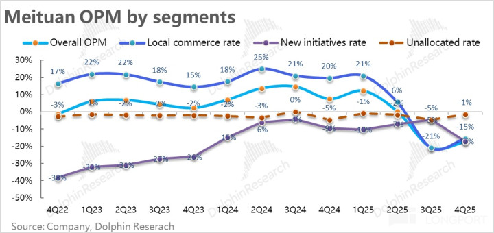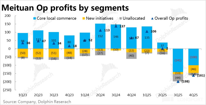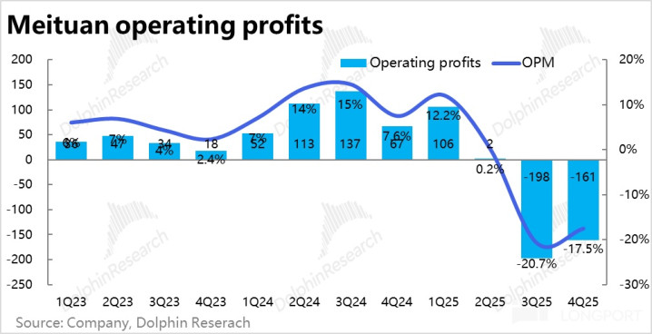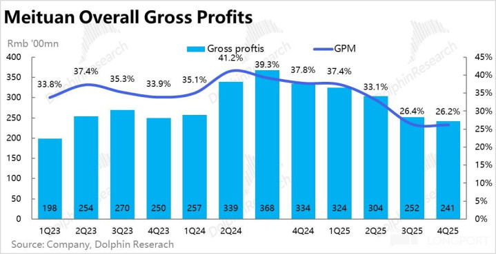 本季毛利率仅为 26.2%,在外卖(配送)补贴影响收窄的情况下,依然环比下滑了约 0.2pct,天然也有冬季的季节性影响。导致毛利润同比下跌近 28%,跌幅如故比较高,显然不足市集预期。