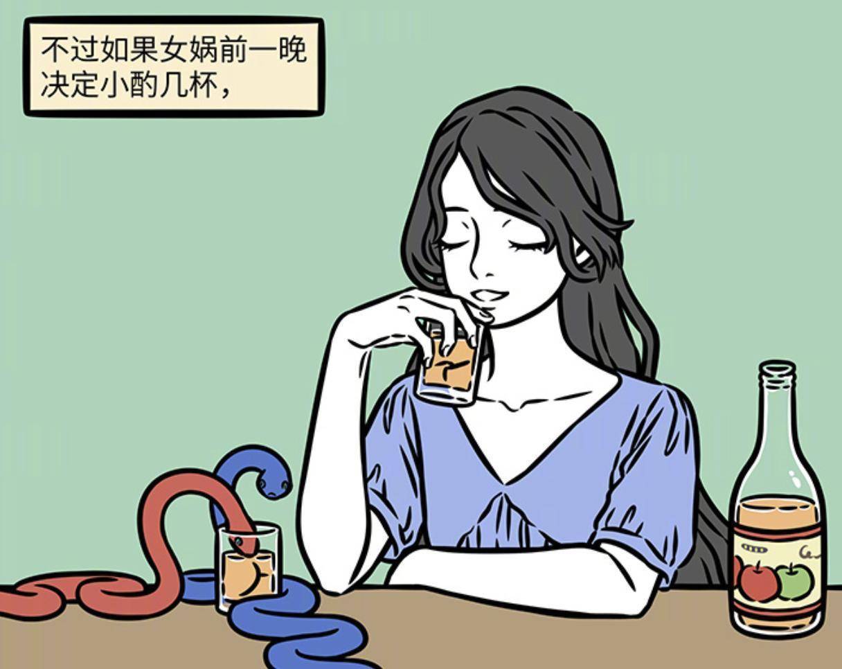 **倘若女娲娘娘前一晚决定小酌几杯,这两条小蛇虽不会语言,但也会静静陪在她身边,凝听她倾吐。只是喝到尽兴时,它们也会倒杯酒喝起来,未几久便会喝醉,毕竟它们酒量一般。**