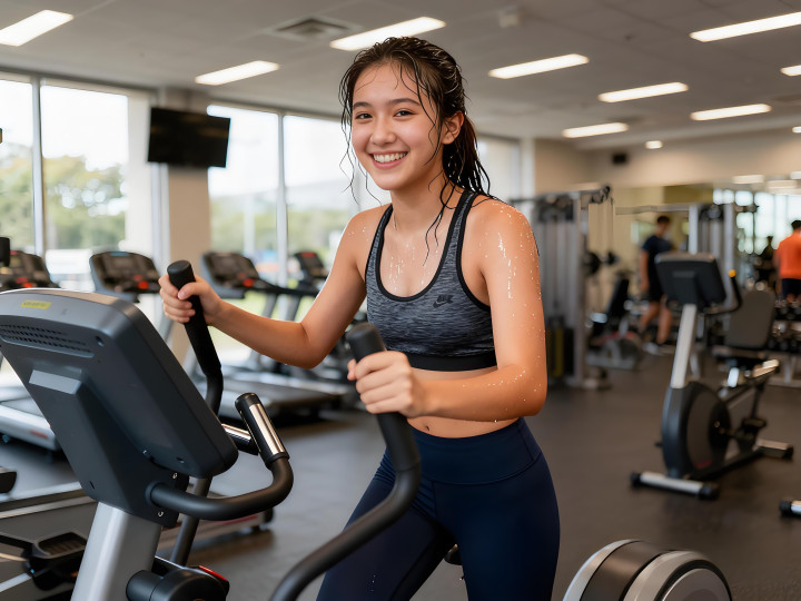正在健身的女留学生(AI生成)