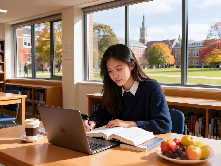 正在学习的女留学生(AI生成)