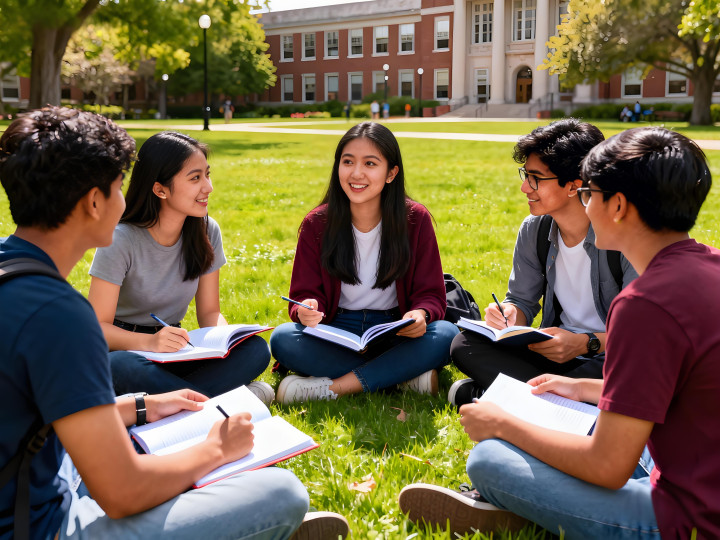 与同学筹划问题的女留学生(AI生成)