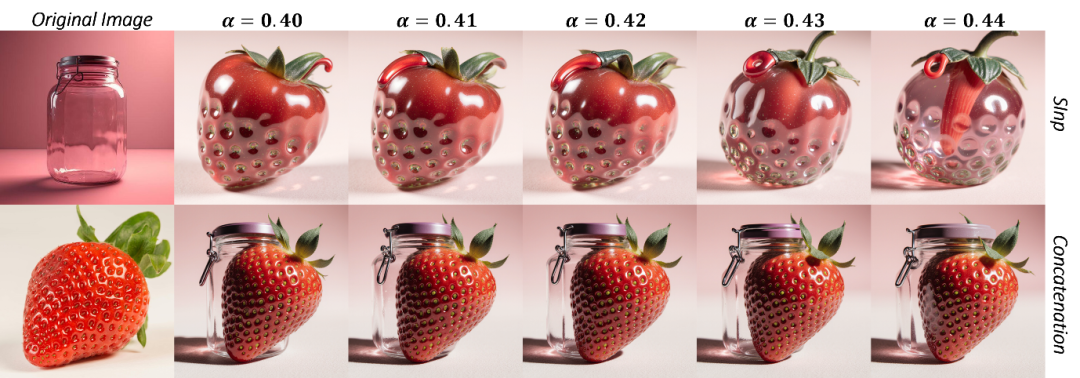 它不再拼接,而是用球面插值(spherical interpolation) 去羼杂两组视觉表征,让它们沿着一个更天然的潜空间旅途通俗过渡,最终变成单一、连贯、和解的新实体。