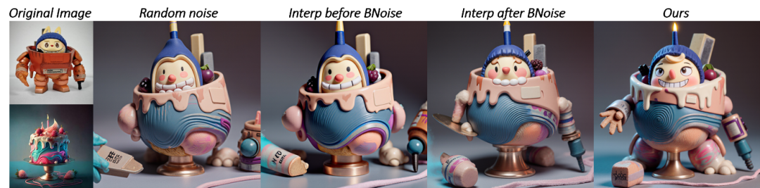 好多东谈主一看到「交融」就会猜想插值。 但 VMDiff 在前边的 Blending Noise(BNoise) 阶段并莫得这样作念。
