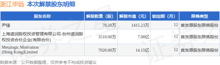 银河国际游戏平台官网 浙江华远(301535)1.06亿股限售股将于3月30日解禁, 占总股本24.92%