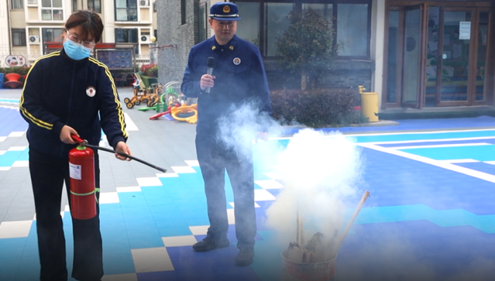 “正本熄灭器是这么用的呀!”在实操程序,教员工们在消防员的指挥下,躬行上阵体验了一把用熄灭器扑灭明火的进程。