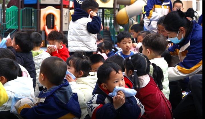下昼3点半,模拟火情“突发”,陈继红园长一声令下,消防警报拉响。各班老诚赶紧到位,一边安抚孩子们的脸色,一边指挥大家用湿毛巾或口罩捂住口鼻。孩子们天然年齿小,但一个个色调严肃,猫着腰,银河国际游戏平台官网在老诚的教授下,按照预定的消防逃生阶梯,赶紧从东西两侧楼梯有序猬缩。